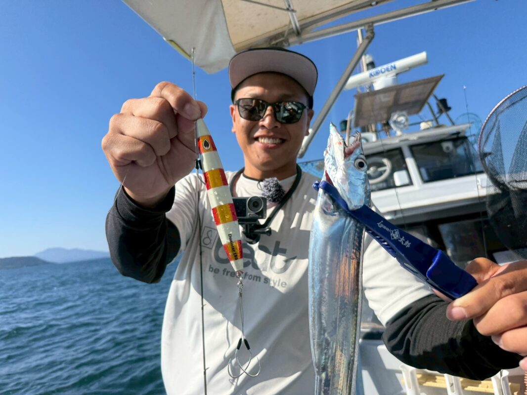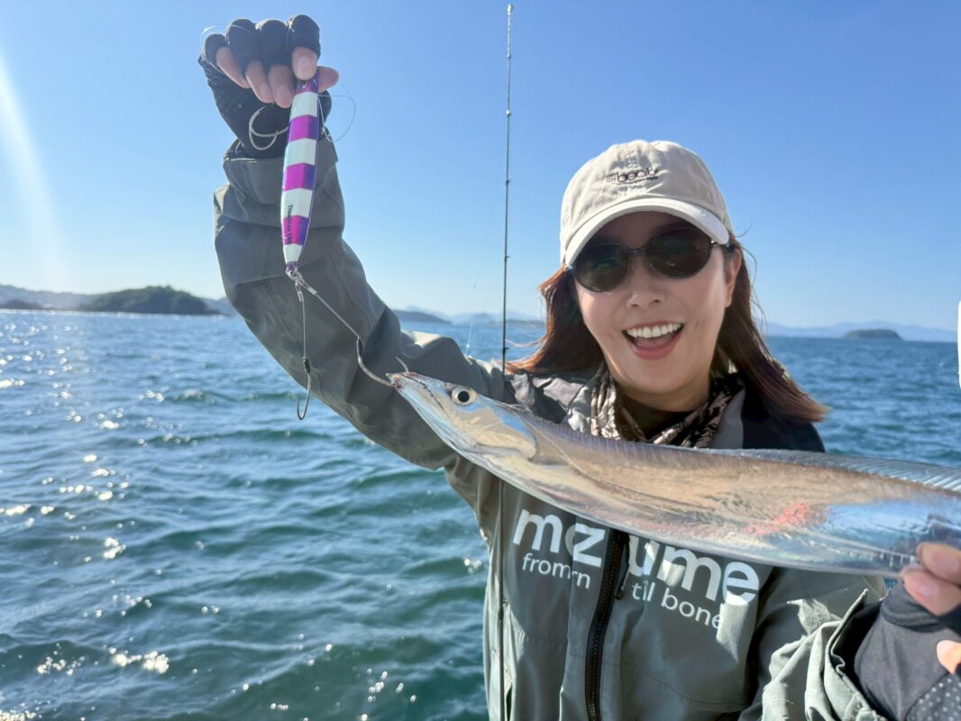 熊本県「愛任丸」さんにお世話になり「&beat」大橋正義さん、蒼井さやさんによる有明海のタチウオジギングをお届けします!前日の悪天候で薄い反応の中、究極のポイントを見つけ出す。上げのアクションではなく”デュアルスター”をアクションさせ一瞬の間からのバックスライドが決め手となった!大橋さんよりアクションのコツを解説♪詳しい内容考はぜひ放送でご覧ください!