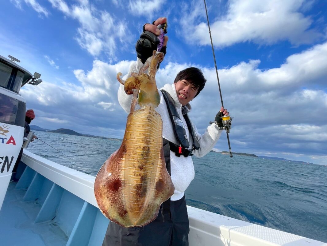 佐賀県唐津市「きずなまりん」さんにお世話になり「キザクラ」エギボーブランドビルダー青木大祐さん・スタッフ池田龍也さんによる 伊万里湾のティップランをお届けします!今季初の寒波に見舞われ、水温は一気に低下。厳しい状況が予想される中、出船直後の一投目からまさかのダブルヒット! しかし、風の強まりとともに中盤からは一転、、沈黙の時間が訪れる。そんな冬の難局を打開するのはシンカーウエイトの調整、カラーローテーション、そして繊細なラインコントロールとステイのテクニック。渋い展開を攻略し、ラストにはグッドサイズを2人揃ってキャッチ!冬のティップランで確実にアタリを引き出すための実践テクニックを実釣と解説で詳しくお届けします。伊万里湾からその全貌をぜひ放送でご覧ください!
